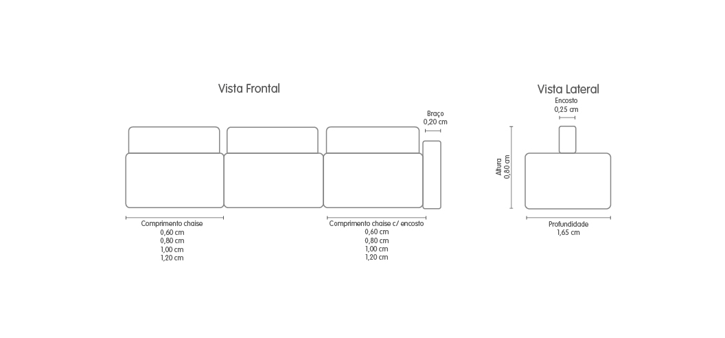 Opcional de módulo chaise com braço, centro e puff.