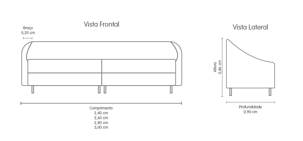 Encosto fixo com almofadas soltas e preenchidas de fibras de silicone.