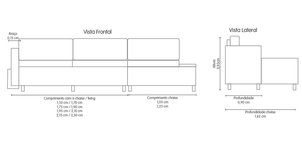 Assento fixo com opcional de chaise.