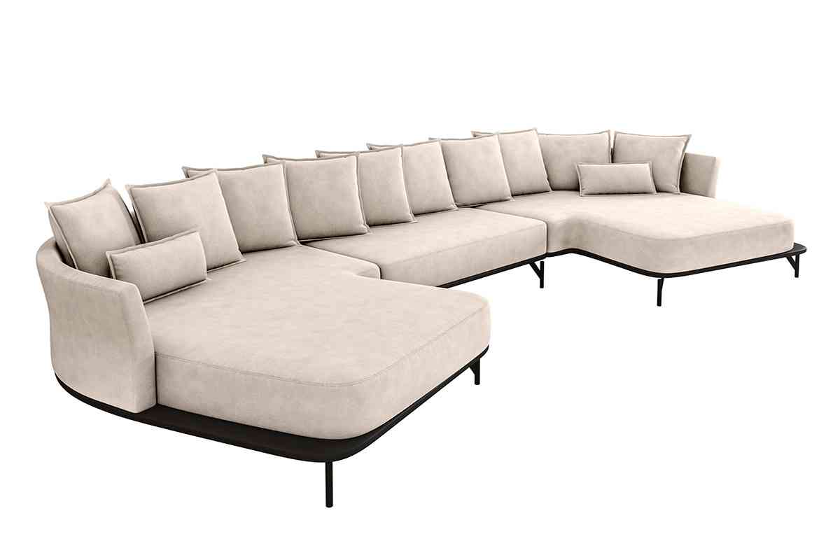 Encosto fixo com almofadas soltas e preenchidas de fibras de silicone.