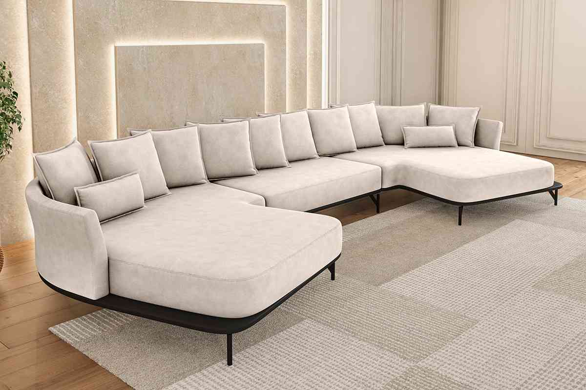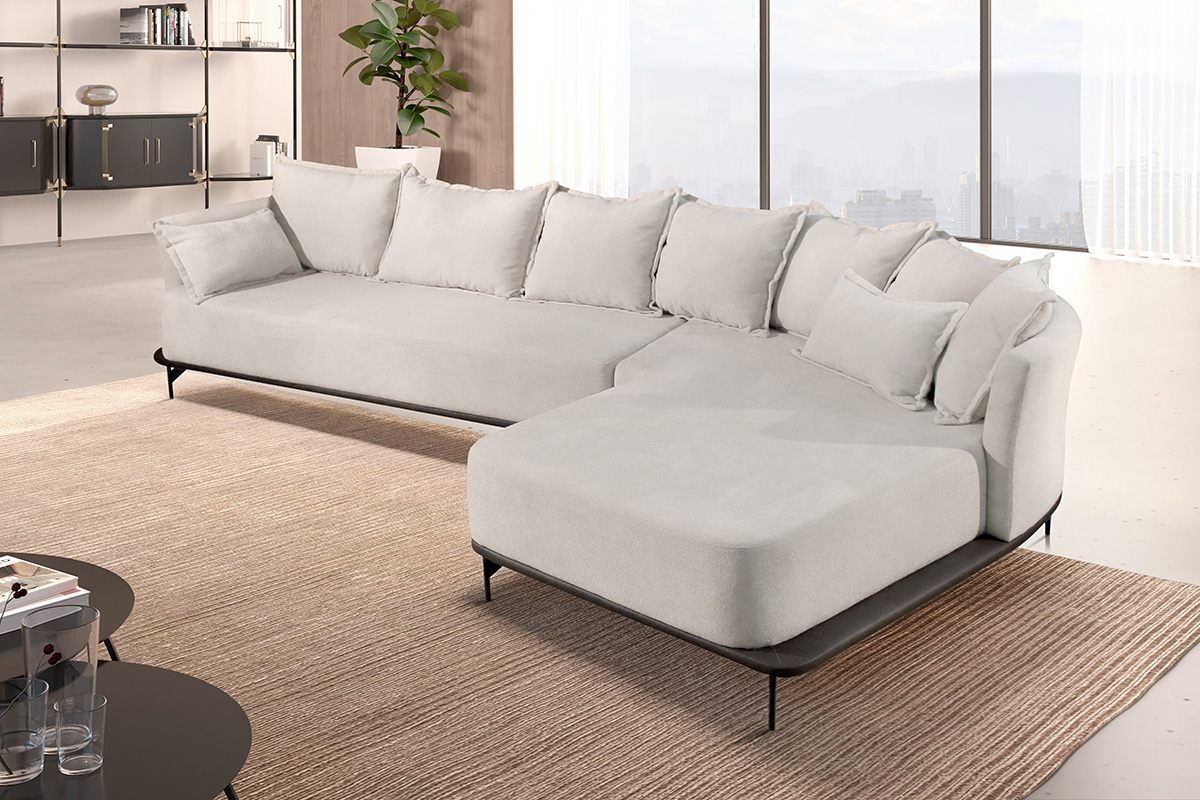 Assento fixo de living com chaise.
