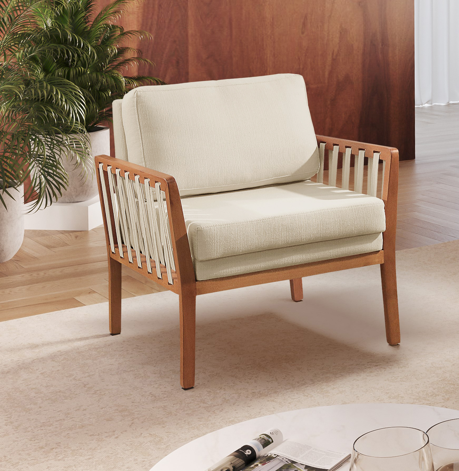 Assento e encosto fixo.