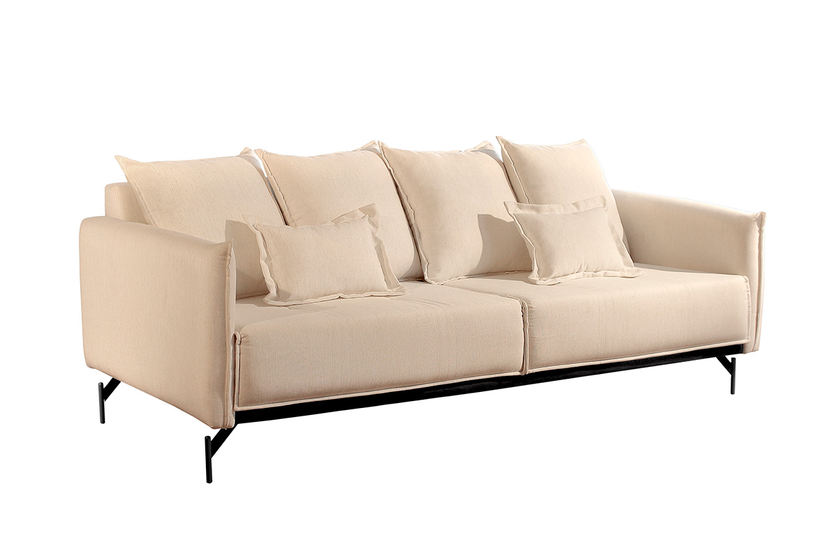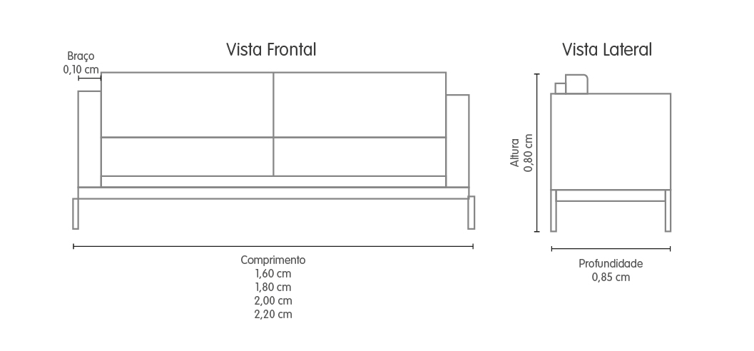 Encosto fixo com almofadas soltas e preenchidas de fibras de silicone.