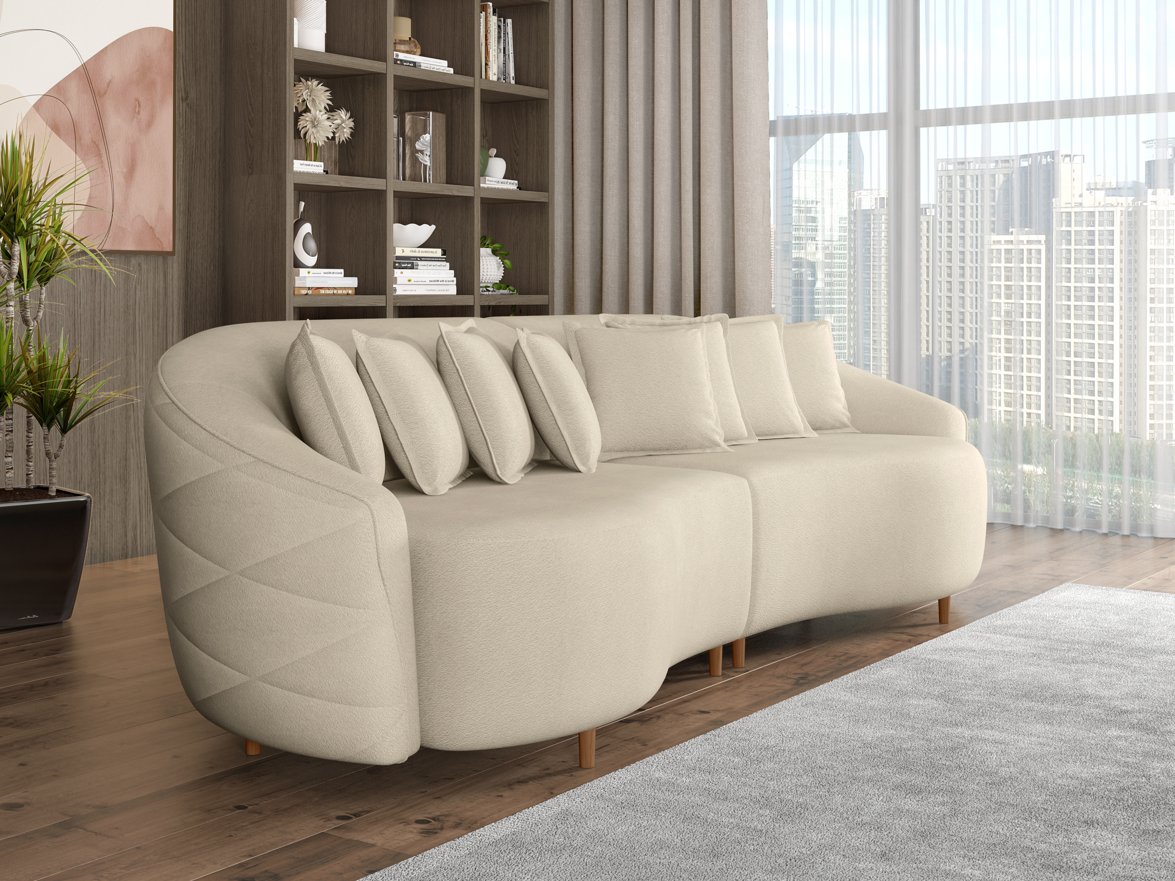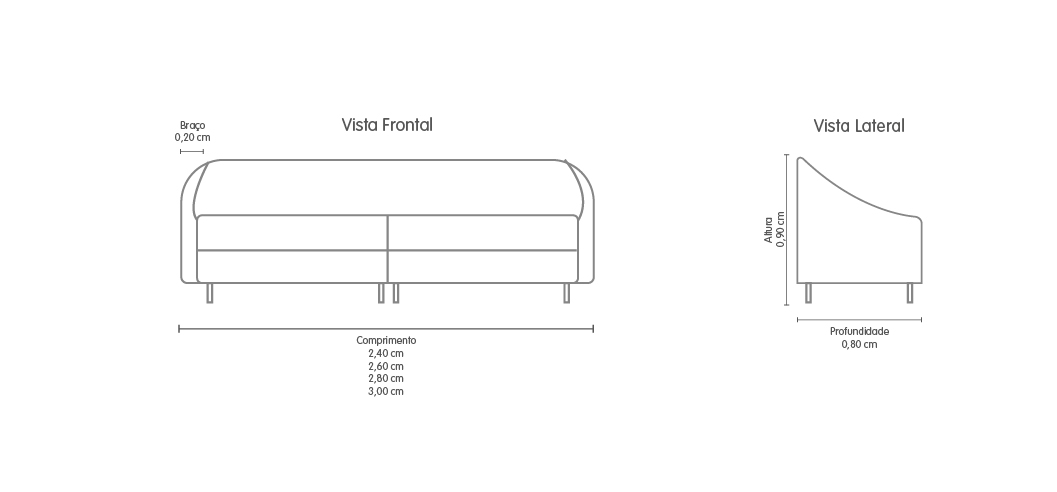 Encosto fixo com almofadas soltas e preenchidas de